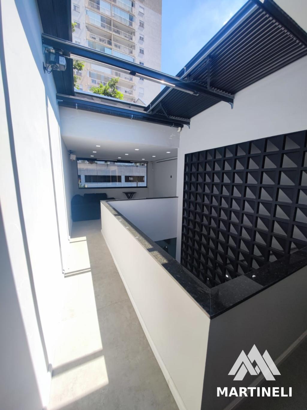 Excelente conjunto comercial com 3 pavimentos de 80 m² sendo 5 salas com possibilidade de 6 salas, 3 banheiros, 2 vagas com possibilidade de 3 vagas, churrasqueira e teto retrátil no último pavimento, mobiliado com geladeira, freezer, cervejeira, sofás e mesas e cadeiras.